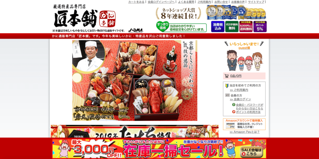 カニの通販としても定評があり、おせち料理にも高級なカニが使用されているのが特徴です。