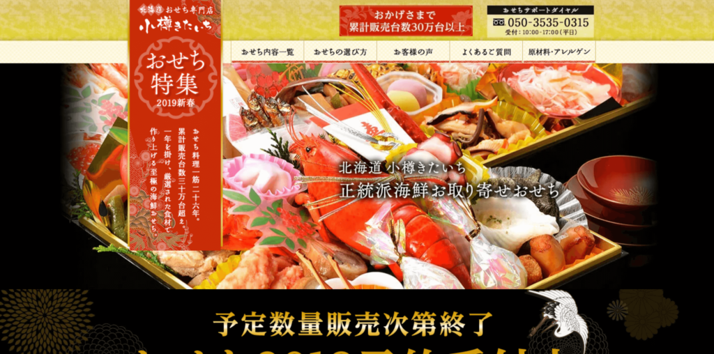 北海道小樽きたいち』は、おせち料理を通販のベースとして提供してきました。その 歴史は30年近くにも及び、累計販売台数は30万台を突破しています。