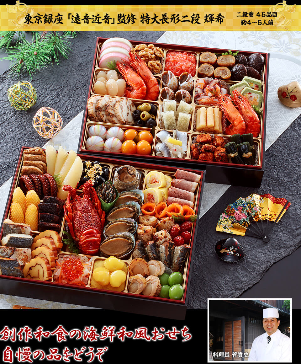 大阪 北新地 はし本』は、高級食材がふんだんに詰め込まれたおせち料理です。 素材を生かした上品な味は、食通達を唸らすほど絶品そのもの